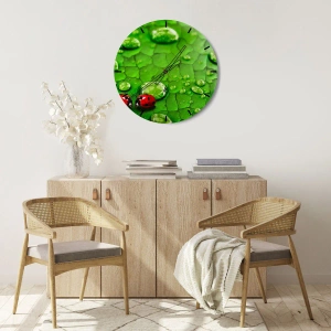 Reloj de pared - Encuentro en Verde - Mariquitas sobre una hoja con gotas de agua
