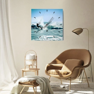 Reloj de pared - Reloj de vidrio - Kitesurfista montando una ola en un día soleado junto al mar - 30x30cm - Déjate llevar - Decoración de pared moderna para salón, cocina y dormitorio ARTTOR