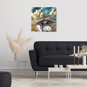 Reloj de pared - Reloj de vidrio - Y en París, en otoño... - 40x40 cm
