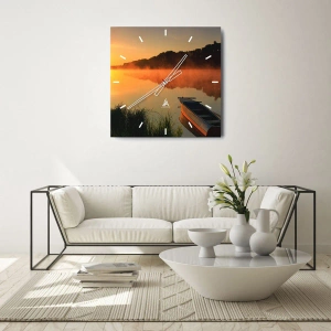 Reloj de pared - Reloj de vidrio - Amanecer sobre el agua como la superficie de un espejo - 40x40 cm