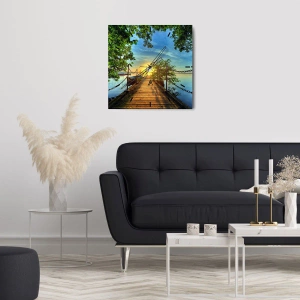 Reloj de pared - Reloj de vidrio - Atardecer junto al agua - 30x30 cm