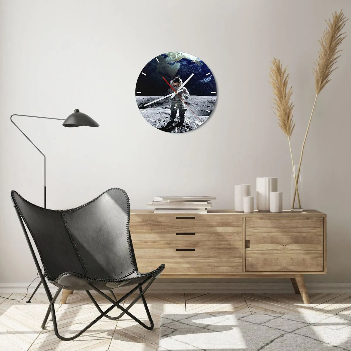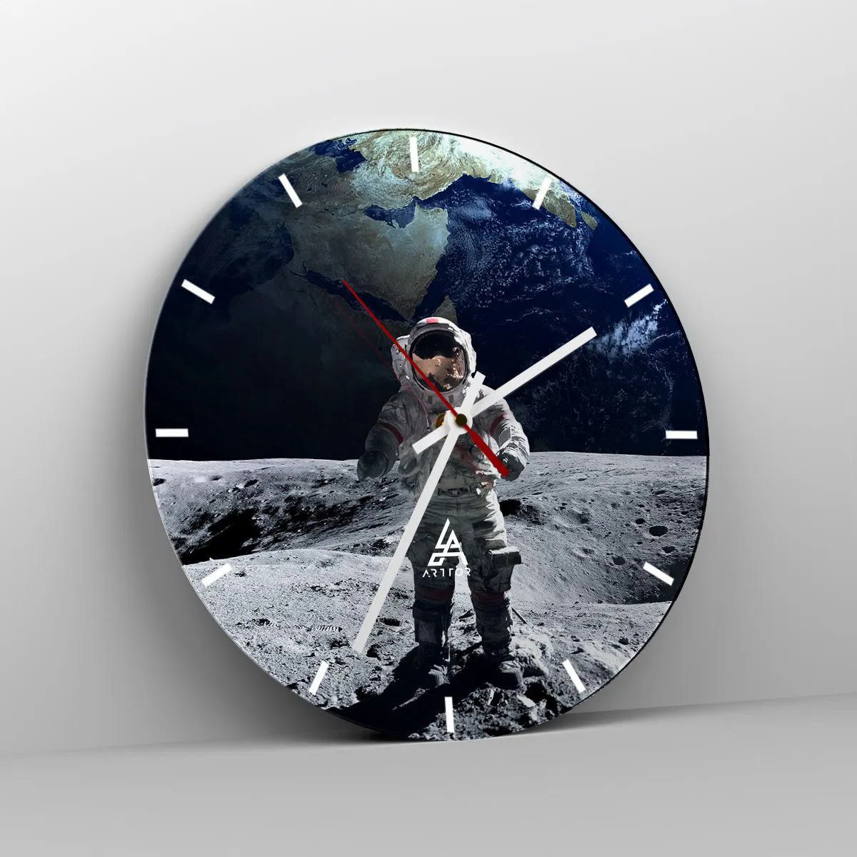 Reloj de pared - Reloj de vidrio - Saludos desde la Luna - 40x40 cm