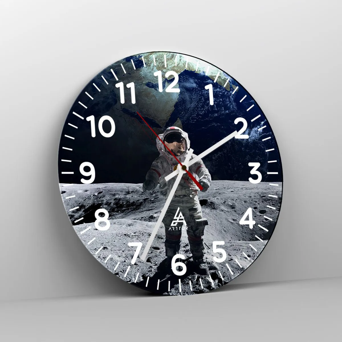 Reloj de pared - Reloj de vidrio - Saludos desde la Luna - 40x40 cm
