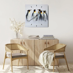 Reloj de pared - Reloj de vidrio - Un grupo de pingüinos emperador en la niebla invernal. - 30x30cm - Reunión en traje de noche - Decoración de pared moderna para salón y dormitorio ARTTOR