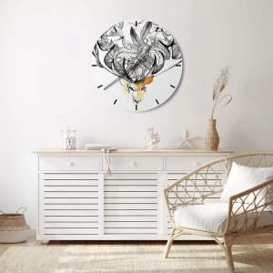 Reloj de pared - Reloj de vidrio - Gráfico sutil de ciervo con astas decorativas. - 30x30cm - Cuernos de la abundancia - Decoración de pared moderna para salón y dormitorio ARTTOR