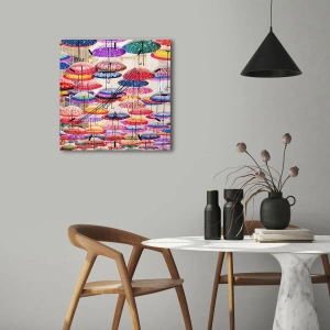 Reloj de pared - Reloj de vidrio - Paraguas de colores suspendidos en el aire - 30x30cm - Pradera urbana - Decoración de pared moderna para salón y dormitorio ARTTOR