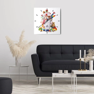 La esfera del reloj muestra juguetes infantiles como ositos de peluche, trenes de madera y bloques de colores, lo que le da un carácter único. Gracias a su estética infantil, es el elemento decorativo perfecto que combina funcionalidad con un diseño creativo.
