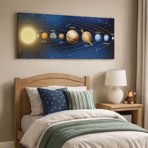 Cuadro sobre lienzo - Impresión de Imagen - Diagrama del sistema solar con planetas y el sol. - 120x50cm - Uno de diez - Decoración de pared moderna para salón y dormitorio ARTTOR