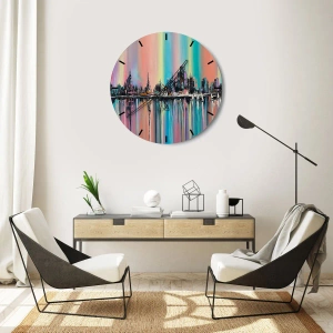 El reloj de pared "Flowing with Night Light" es un elemento decorativo único que combina un diseño moderno con un estilo artístico. Su motivo representa un colorido panorama urbano, cuyos reflejos en el agua crean una composición dinámica y armoniosa.