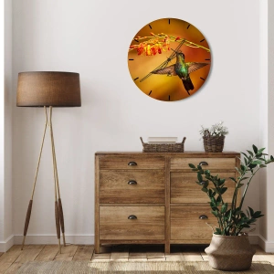 Reloj de pared - Reloj de vidrio - Colibrí junto a una flor bajo la cálida luz - 30x30cm - Mensajero de la luz - Decoración de pared moderna para salón y dormitorio ARTTOR