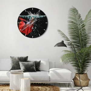 El reloj está vidrio con un espesor de 4mm. La tecnología de fabricación cumple con la clase de seguridad 2B2 según la normativa PN-EN 12600:2004 que garantiza la resistencia al impacto. El reloj de cristal está listo para ser instalado en la pared, tiene un colgador de metal fijado en la parte posterior del reloj y un espaciador de espuma para regular la distancia entre el reloj y la pared. El reloj tiene un mecanismo de flujo silencioso que funciona con una pila de 1,5 V - AA (pila no incluida).