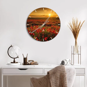 Reloj de pared - Reloj de vidrio - Entre los campos de flores - 30x30 cm