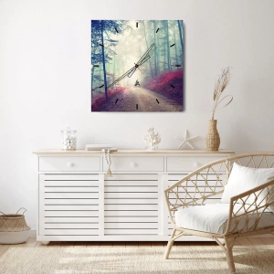 Reloj de pared - Reloj de vidrio - Un sendero forestal mágico rodeado de árboles y niebla. - 30x30cm - Qué bueno es levantarse al amanecer - Decoración de pared moderna para salón y dormitorio ARTTOR