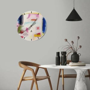 Reloj de pared - Más convexo que cóncavo o plano - Manchas abstractas de colores sobre un fondo claro con un estilo pictórico