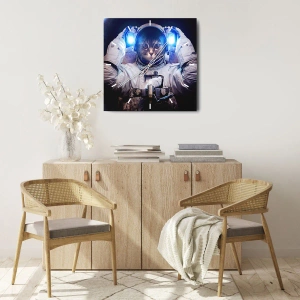 Reloj de pared - Reloj de vidrio - Un gato en un traje de astronauta con la Tierra al fondo y una luz brillante. - 30x30cm - Houston, tienes un problema. - Decoración de pared moderna para salón y dormitorio ARTTOR