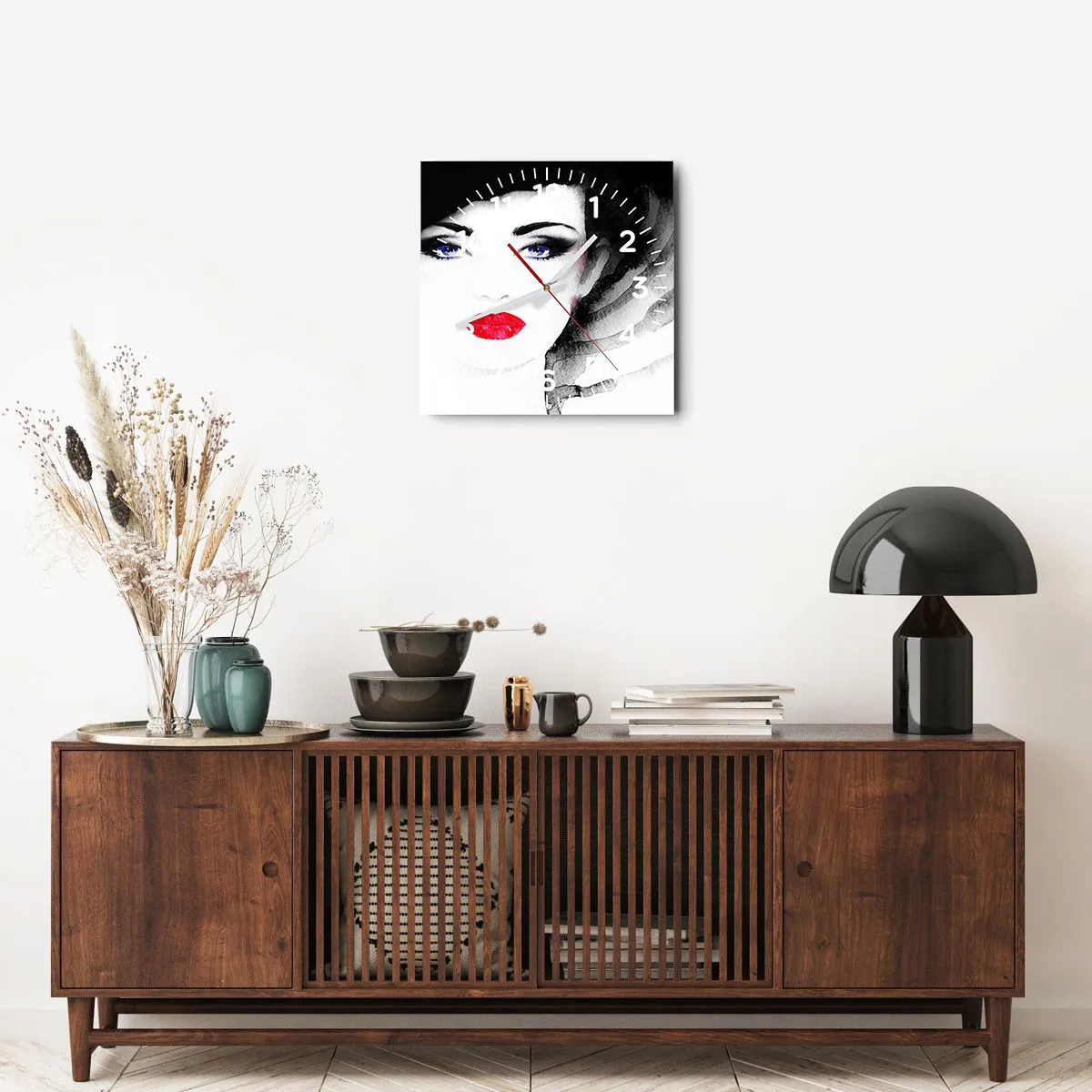 • Rostro de mujer, labios rojos, ojos azules, Personas, Moda, Arte, Vintage y Retro, Para el comedor, Para el recibidor, Para el salón, Para el dormitorio, , Blanco, Negro, Rojo, Cuadrado