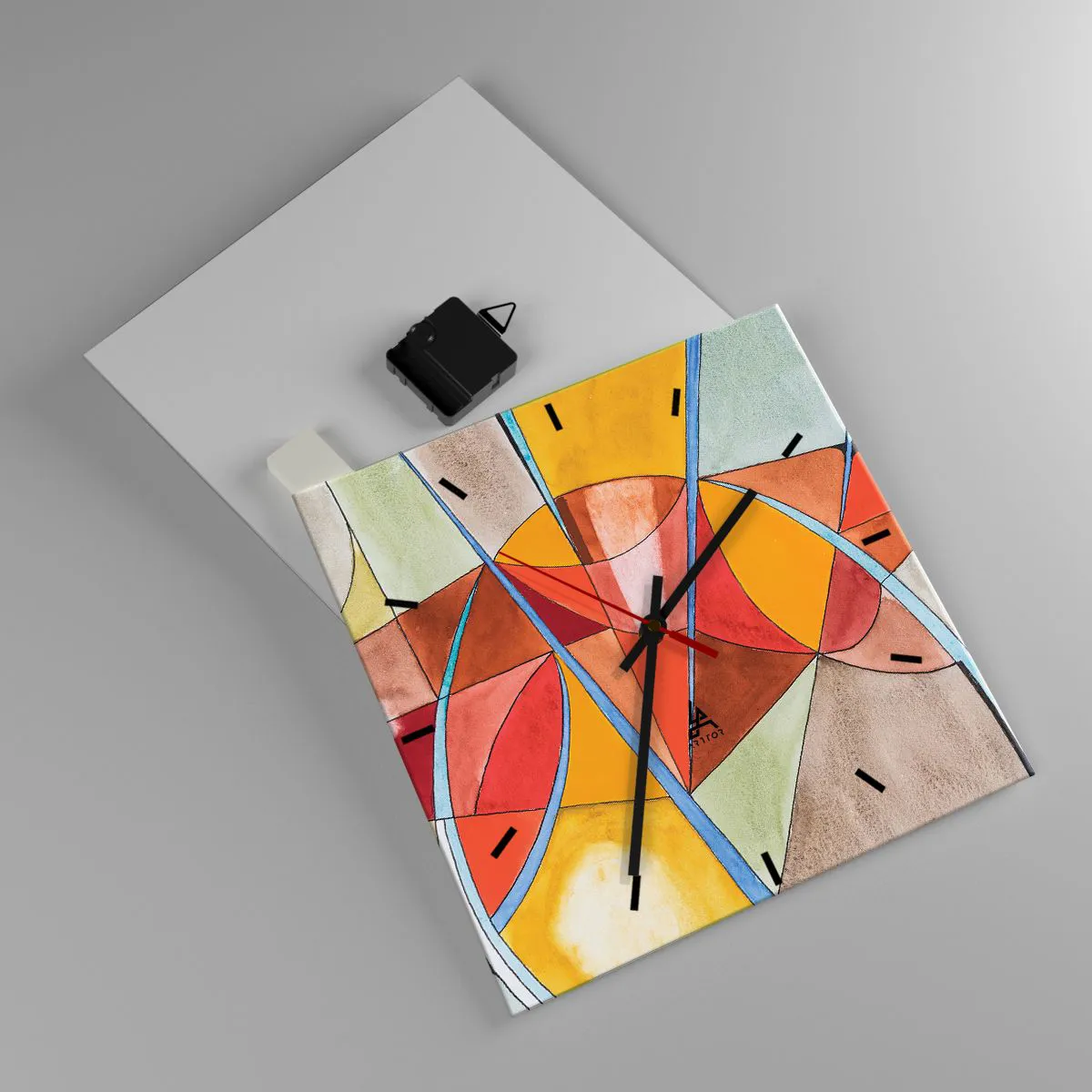 Reloj de pared - Reloj de vidrio - Una composición abstracta en vivos colores geométricos. - 30x30cm - Carrusel de sueños - Decoración de pared moderna para salón y dormitorio ARTTOR