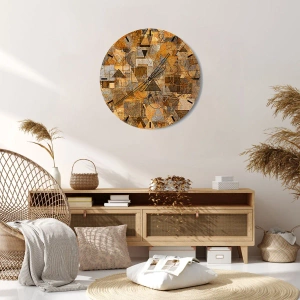 Reloj de pared - Reloj de vidrio - Patrones geométricos abstractos en tonos dorados - 30x30cm - El mundo en formas - Decoración de pared moderna para salón y dormitorio ARTTOR