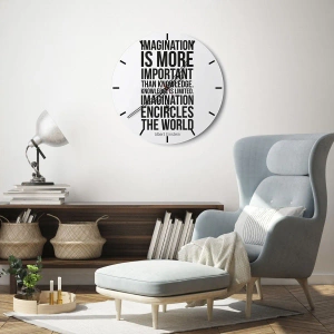 Reloj de pared - Reloj de vidrio - Einstein, sobre el poder de la imaginación - 40x40 cm