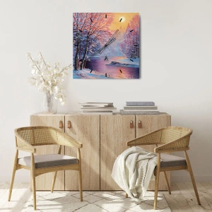 Reloj de pared - Reloj de vidrio - Colores del invierno - 30x30 cm