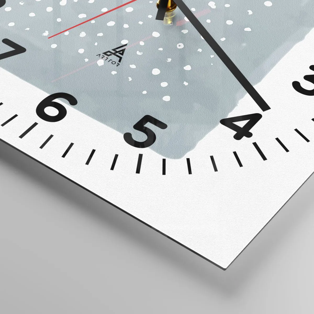 El reloj está vidrio con un espesor de 4mm. La tecnología de fabricación cumple con la clase de seguridad 2B2 según la normativa PN-EN 12600:2004 que garantiza la resistencia al impacto. El reloj de cristal está listo para ser instalado en la pared, tiene un colgador de metal fijado en la parte posterior del reloj y un espaciador de espuma para regular la distancia entre el reloj y la pared. El reloj tiene un mecanismo de flujo silencioso que funciona con una pila de 1,5 V - AA (pila no incluida).