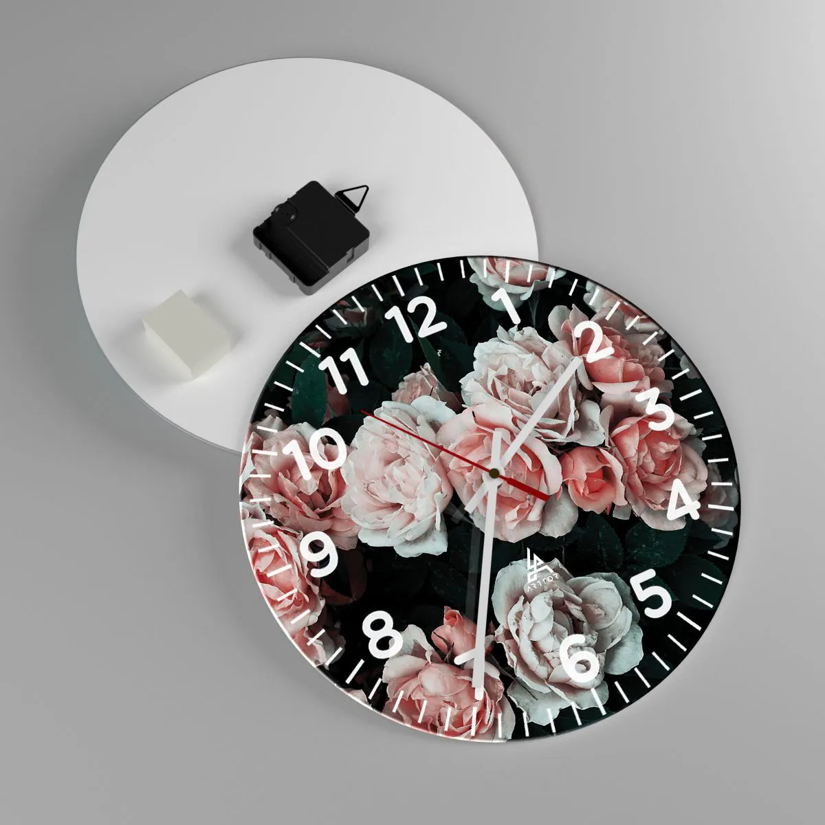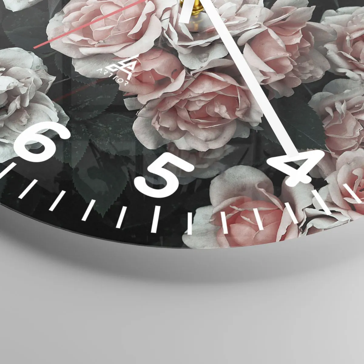 Reloj de pared - Reloj de vidrio - Conjunto de rosas - 30x30 cm