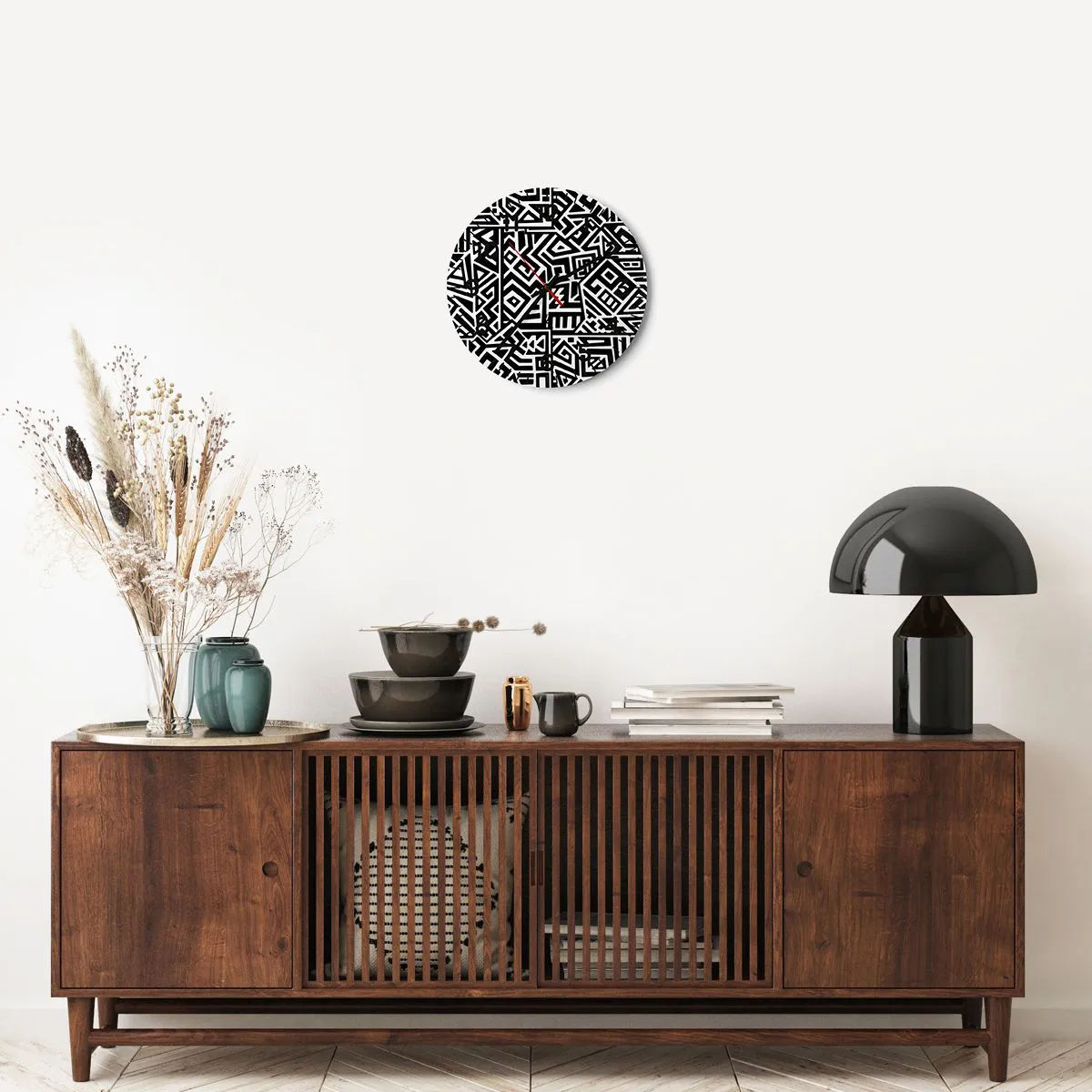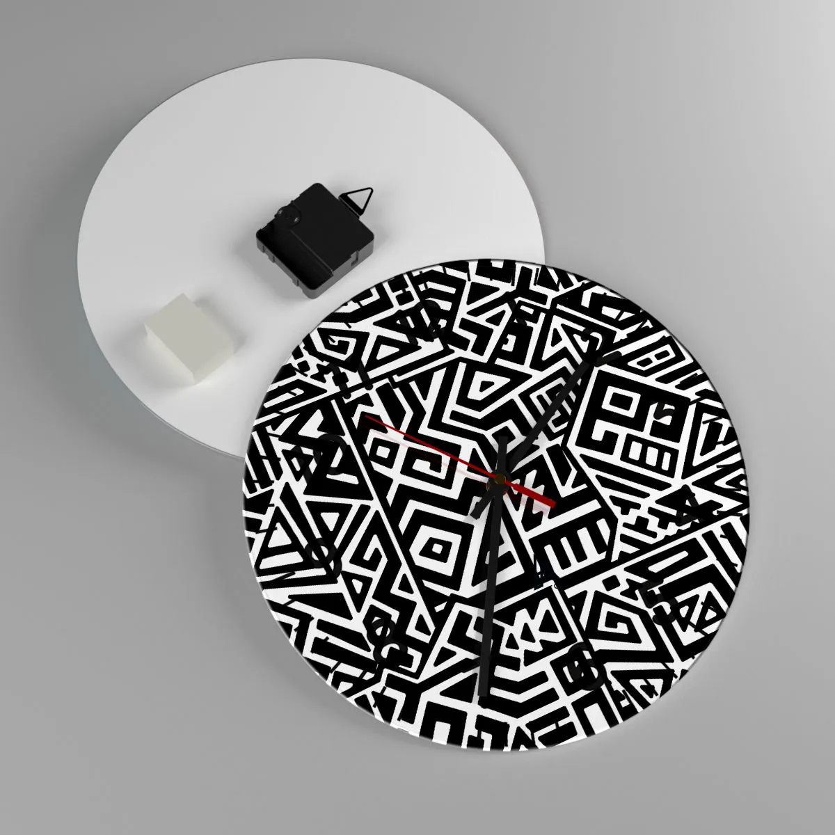 Reloj de pared - Reloj de vidrio - Composición precolombina - 30x30 cm