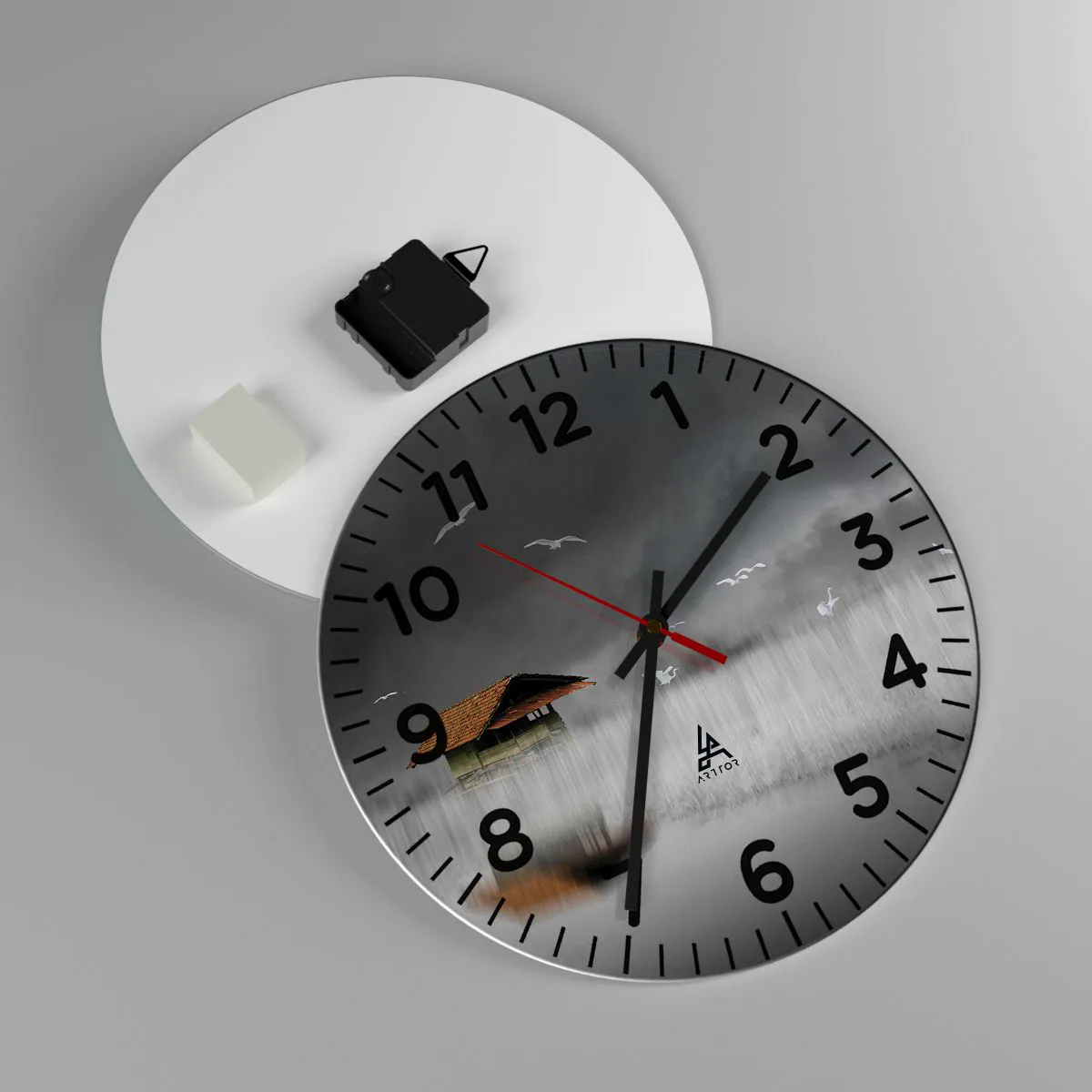 El reloj está vidrio con un espesor de 4mm. La tecnología de fabricación cumple con la clase de seguridad 2B2 según la normativa PN-EN 12600:2004 que garantiza la resistencia al impacto. El reloj de cristal está listo para ser instalado en la pared, tiene un colgador de metal fijado en la parte posterior del reloj y un espaciador de espuma para regular la distancia entre el reloj y la pared. El reloj tiene un mecanismo de flujo silencioso que funciona con una pila de 1,5 V - AA (pila no incluida).