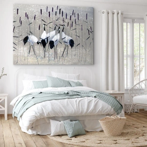 Cuadro sobre lienzo - Impresión de Imagen - Garzas en la hierba contra un fondo tranquilo - 160x50cm - Entre los suyos - Decoración de pared moderna para salón y dormitorio ARTTOR