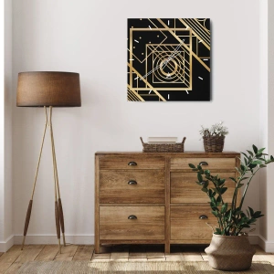 Reloj de pared - Reloj de vidrio - Patrones geométricos dorados sobre un fondo negro - 30x30cm - Geometría dorada - Decoración de pared moderna para salón y dormitorio ARTTOR
