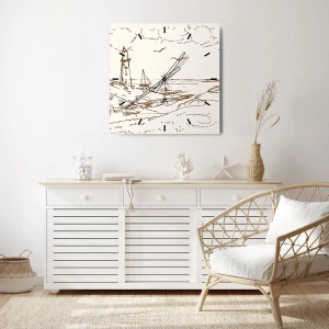 Reloj de pared - Reloj de vidrio - Ilustración de un faro con un velero y pájaros contra el cielo - 30x30cm - Un esbozo de un recuerdo de verano - Decoración de pared moderna para salón, cocina y dormitorio ARTTOR