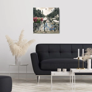 • Ciudad, Amsterdam, Bicicleta, Arquitectura, Paisajes, Ciudades, Viajes, Para la oficina, Para el estudio, Para el comedor, Para el recibidor, Para el salón, Para el dormitorio, Azul, rosa, gris, Cuadrado