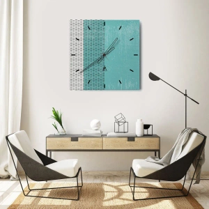 Reloj de pared - Composición Equilibrada - Gráfico turquesa y negro con patrón y textura rítmica