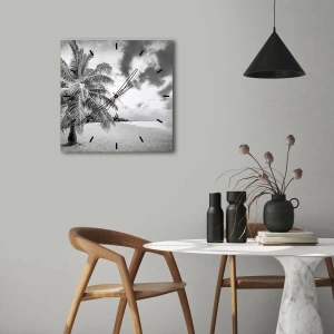 Reloj de pared - Reloj de vidrio - Palmera en blanco y negro en una playa vacía con nubes - 30x30cm - Anhelo de soledad.... - Decoración de pared moderna para salón y dormitorio ARTTOR