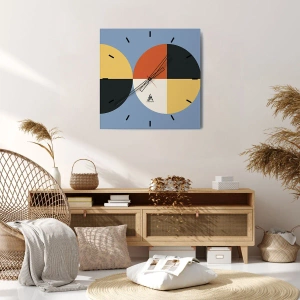 Reloj de pared - Reloj de vidrio - Círculos geométricos sobre un fondo azul. - 30x30cm - Mira y cuenta - Decoración de pared moderna para salón y dormitorio ARTTOR