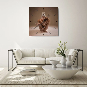Reloj de pared - Reloj de vidrio - Silueta artística de una mujer sobre un fondo beige. - 30x30cm - Unidad de cuerpo y espíritu - Decoración de pared moderna para salón y dormitorio ARTTOR