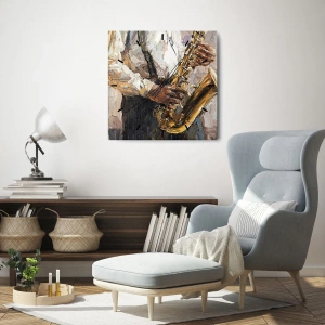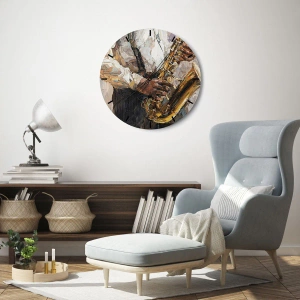 Reloj de pared - Reloj de vidrio - Un músico tocando el saxofón con un estilo artístico. - 30x30cm - Llegó el momento del solo - Decoración de pared moderna para salón y dormitorio ARTTOR