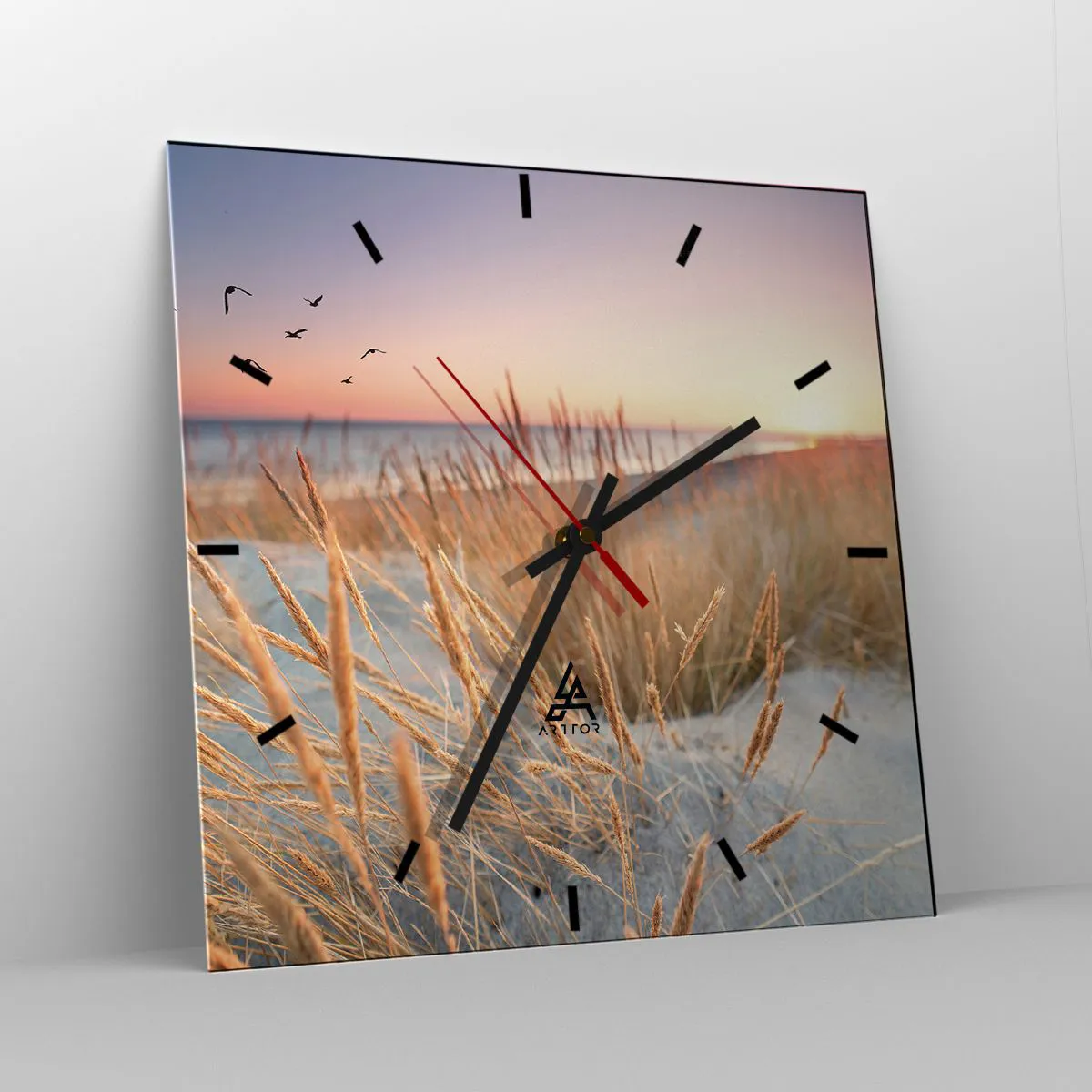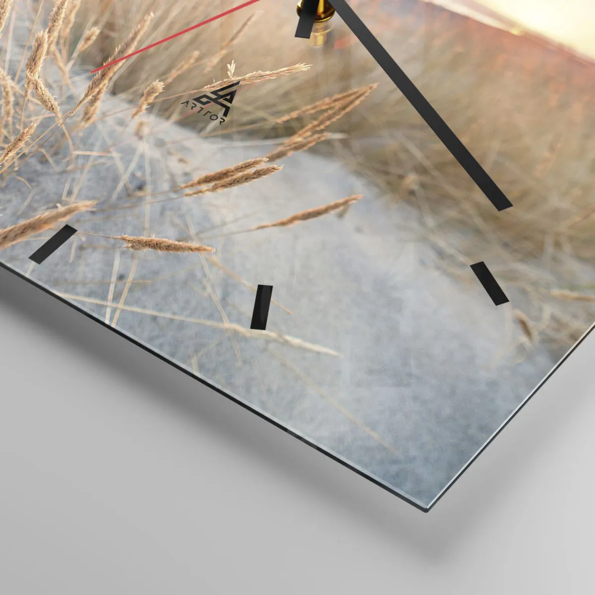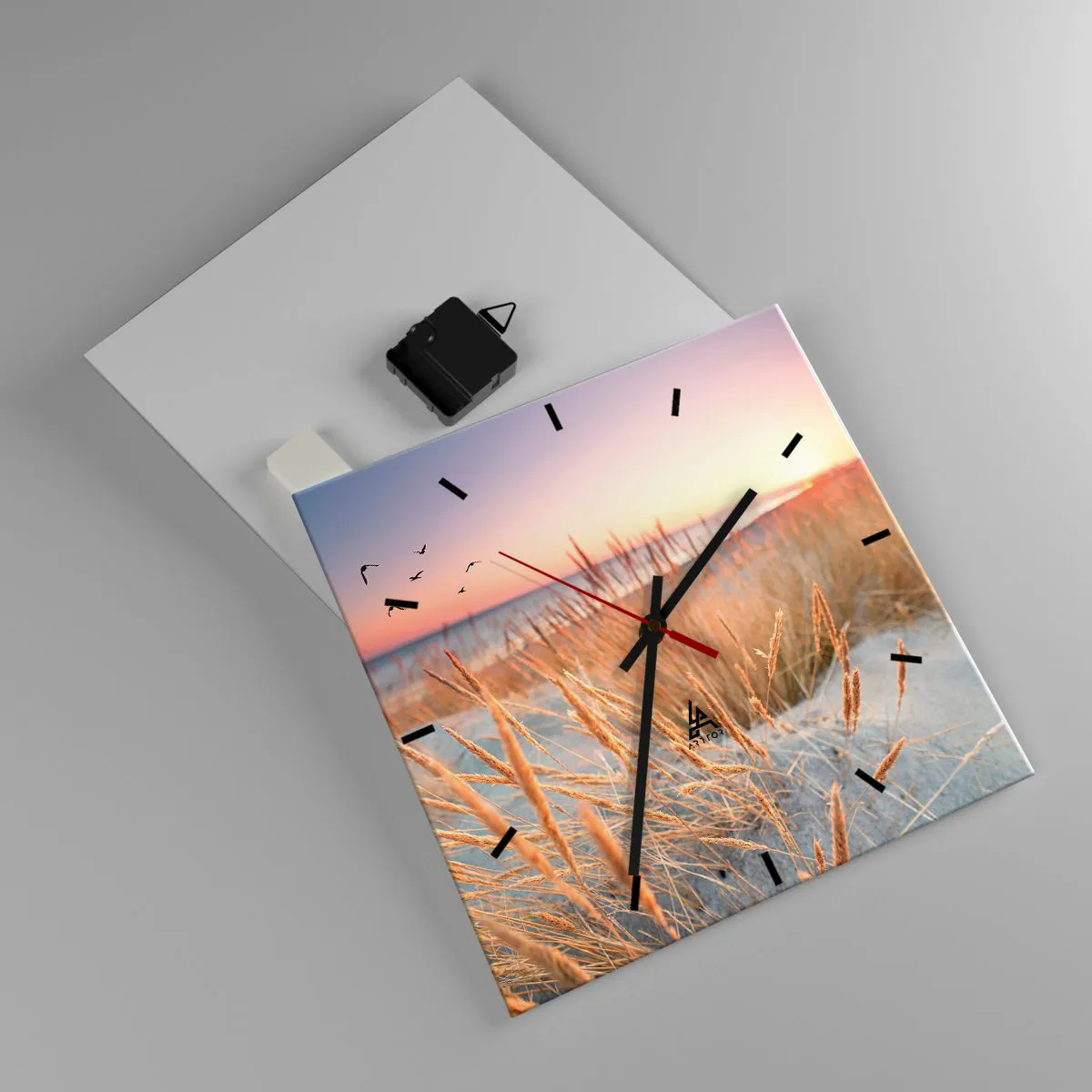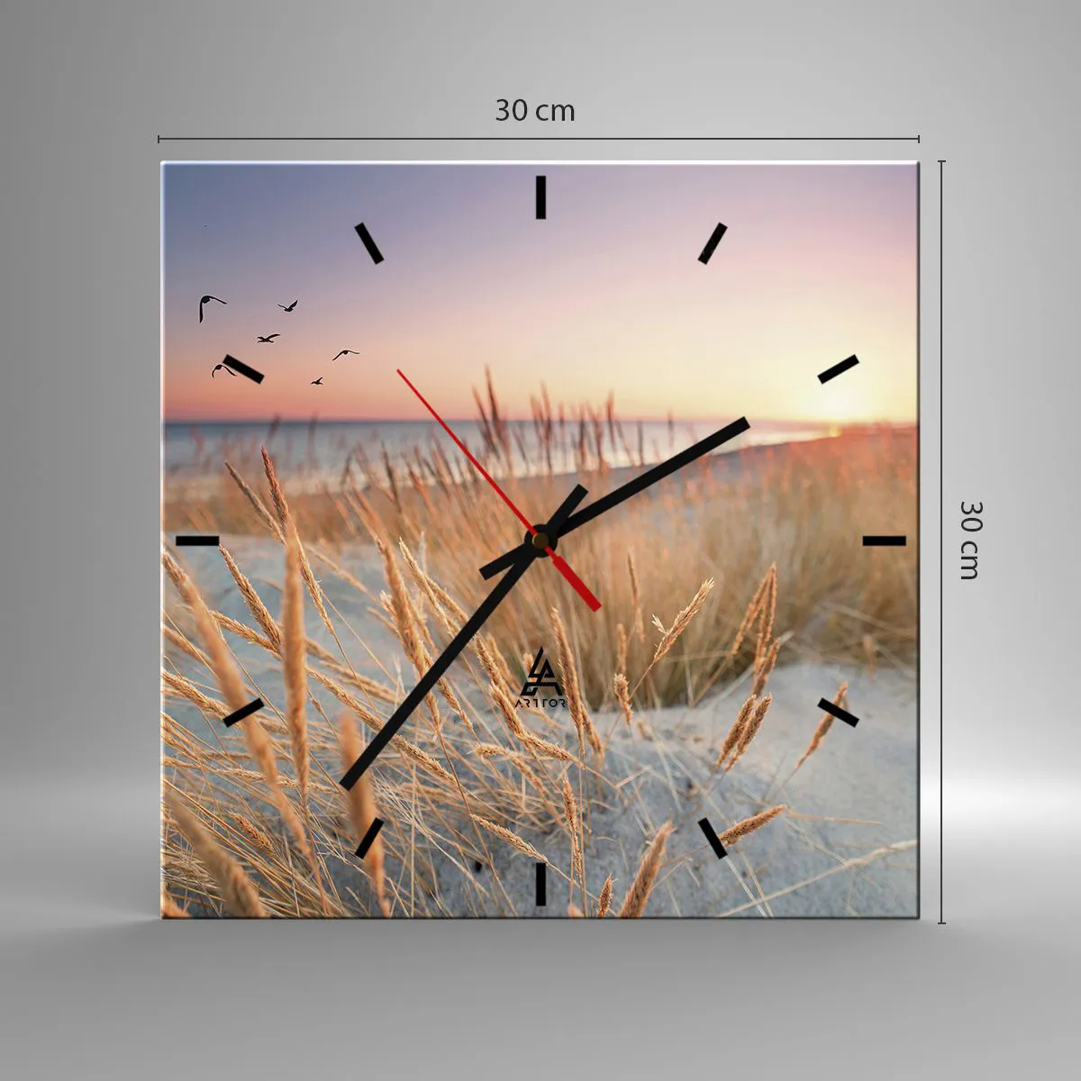 Reloj de pared - Reloj de vidrio - Playa al atardecer con hierbas altas - 30x30cm - Dulce nana del Báltico - Decoración de pared moderna para salón y dormitorio ARTTOR