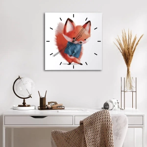 Reloj de pared - Reloj de vidrio - Un lindo zorro con un traje azul. - 30x30cm - ¿Me veo bien con esto? - Decoración de pared moderna para salón y dormitorio ARTTOR