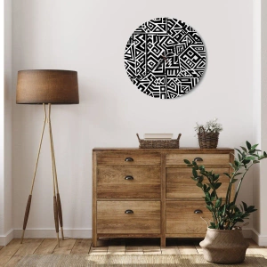 "Composición precolombina" es un reloj de pared extremadamente original que presenta un patrón geométrico inspirado en motivos precolombinos. La combinación de contrastes de negro y blanco, y la disposición dinámica de los patrones, le confieren un carácter distintivo y artístico. Los patrones crean un conjunto coherente y llamativo que combina a la perfección con los diseños de interiores modernos.