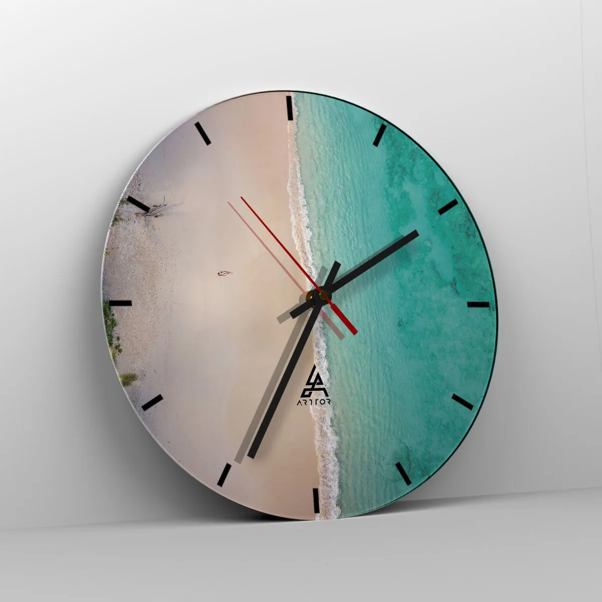 Reloj de pared - Reloj de vidrio - Playa del paraíso - 40x40 cm