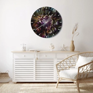 Reloj de pared - Reloj de vidrio - Primer plano de una flor de dalia en tonos oscuros. - 30x30cm - El florecimiento de la hermosura - Decoración de pared moderna para salón y dormitorio ARTTOR