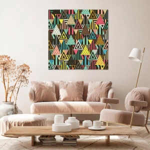 Cuadro sobre lienzo - Impresión de Imagen - Patrón geométrico colorido con triángulos y líneas. - 140x50cm - A ritmo de triángulo - Decoración de pared moderna para salón y dormitorio ARTTOR