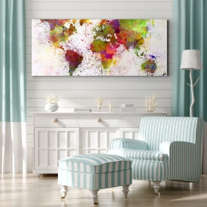 - Un colorido mapa del mundo de estilo abstracto moderno. Sus vibrantes colores y formas únicas lo convierten en la decoración ideal para una sala de estar, una oficina o un dormitorio. Impreso en lienzo, mide 70 x 50 cm horizontalmente.