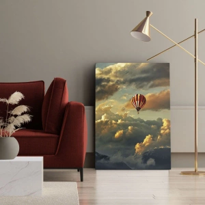 Cuadro sobre lienzo - Impresión de Imagen - Un globo contra un fondo de nubes dramáticas. - 100x70cm - Vuelo porque quiero - Decoración de pared moderna para salón y dormitorio ARTTOR