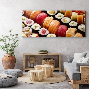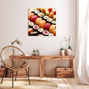 Cuadro sobre lienzo - Impresión de Imagen - Sushi colorido dispuesto en filas con diversos ingredientes. - 70x100cm - Colores y sabores de Asia - Decoración de pared moderna para salón y dormitorio ARTTOR