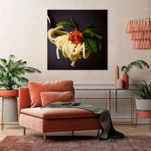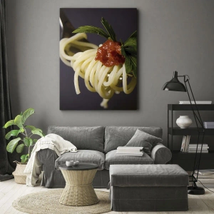 Cuadro sobre lienzo - Impresión de Imagen - Pasta espaguetis al tenedor con salsa de tomate y perejil - 80x120cm - Un sabroso bocado - Decoración de pared moderna para salón y dormitorio ARTTOR