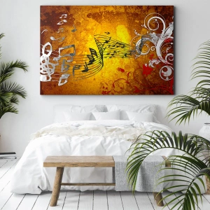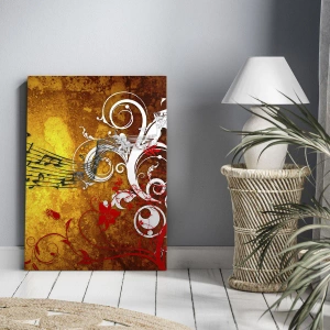 Cuadro sobre lienzo - Impresión de Imagen - Notas musicales abstractas sobre un fondo colorido con adornos. - 50x70cm - Deja que la música fluya - Decoración de pared moderna para salón y dormitorio ARTTOR