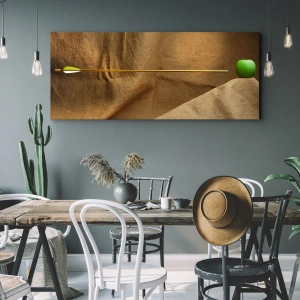 Cuadro sobre lienzo - Impresión de Imagen - Manzana verde sobre tela con una flecha creando una composición - 50x70cm - Evocar el espíritu de Wilhelm Tell - Decoración de pared moderna para salón y dormitorio ARTTOR