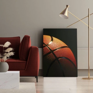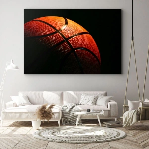 Cuadro sobre lienzo - Impresión de Imagen - Primer plano de una pelota de baloncesto sobre un fondo negro - 50x70cm - Hermoso como un planeta - Decoración de pared moderna para salón y dormitorio ARTTOR
